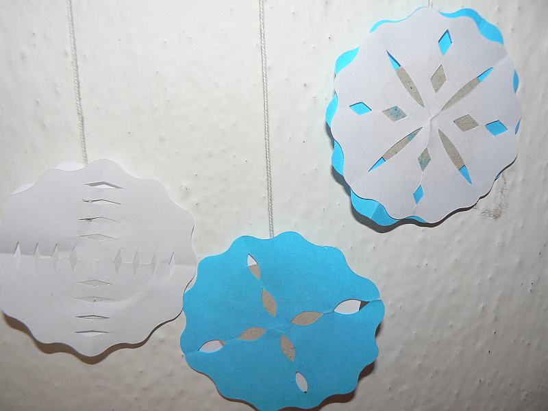 Na obláčik vystrihnutý z kartónu nalepíme papier s predtlačeným biblickýn veršom a dozdobíme ho drobnými snehovými vločkmi (tie si môžeme urobiť vyrážadlom „snehová vločka“). Ešte priviažeme papierové snehové vločky a snehový obláčik je hotový.