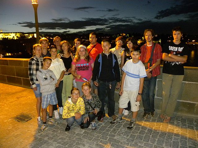 Nedeľa-12.7.2009, 13:30 – to bol čas nášho stretnutia na vlakovej stanici v Banskej Bystrici. Prišli všetci, nik nemeškal. Batohy na chrbtoch, spacáky, niektorí si pribalili aj vankúše, aby sa im lepšie driemalo vo vlaku. To však ešte netušili, že nás čaká prestupovanie v Žiline na rýchlik do Prahy. Ale ako to už na Slovensku býva, náš vlak do Žiliny meškal a tak vo Vrútkach bolo nečakaný prestup na vlak smerom do Bratislavy. Potom však nastala vytúžená chvíľa a my sme už sedeli vo vlaku smer Praha. Usadili sme sa na svoje miesta (ani sme sa veľmi nehádali) a začali sme vybaľovať to, čo nám naši blízki nachystali, koláčiky, rezne, nechýbala ani kávička v jedálenskom vozni. Cesta ubiehala rýchlo, poniektorí si ju krátili krížovkami, iní zase vysedávali na kávičke. Ani sme sa nenazdali a už nás vítala metropola Českej republiky – stovežatá Praha, teda presnejšie Hlavní nádraží, kúpili sme lístky na metro a presunuli sme sa do nášho dočasného domova v časti zvanej Kobylisy. Nasledovalo rozdelenie izieb, vybaľovanie, dojedanie rezňov a potom nás čakalo prvé večerné stíšenie pri modlitbe a piesňach, súčasťou boli aj pokyny ako sa máme správať a čo robiť, ak by sme sa náhodou stratili a tak sme vyfasovali malú príručku Badínčana ako sa (ne)stratiť vo veľkomeste. Unavení z cesty sme zaliezli do svojich spacákov a zaželali sme si dobrú noc. (pripravila JM)
